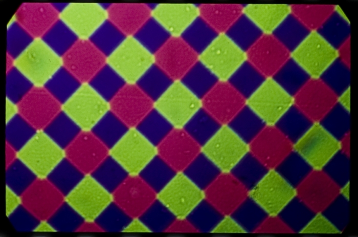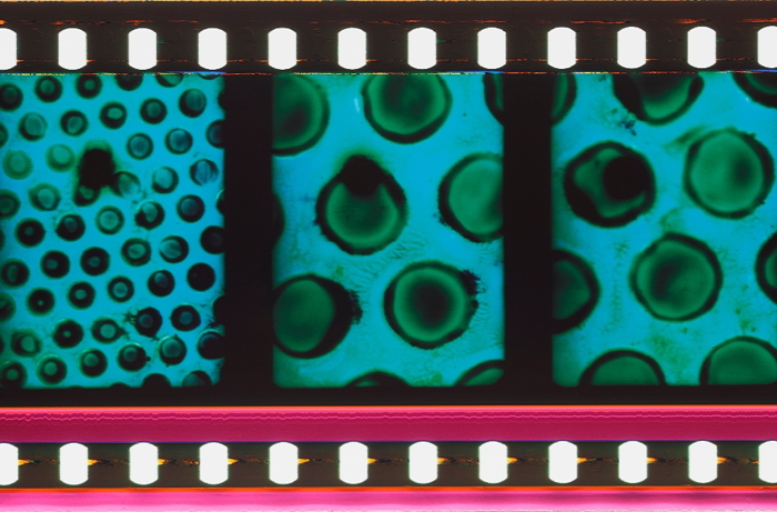 In a joint research project between HTW Berlin and the University of Zurich (UZH), historical film color samples stemming from the Koshofer Collection, now at UZH, have been microscopically investigated in transmission and in cross-sections at the conservation-scientific facilities of HTW Berlin. The intriguing and often stunning photomicrographs showcase the relationship between the photographic image, their material and chemical composition and the three-dimensional structure unique to the analog moving image heritage in color, while exhibiting their own peculiar beauty.